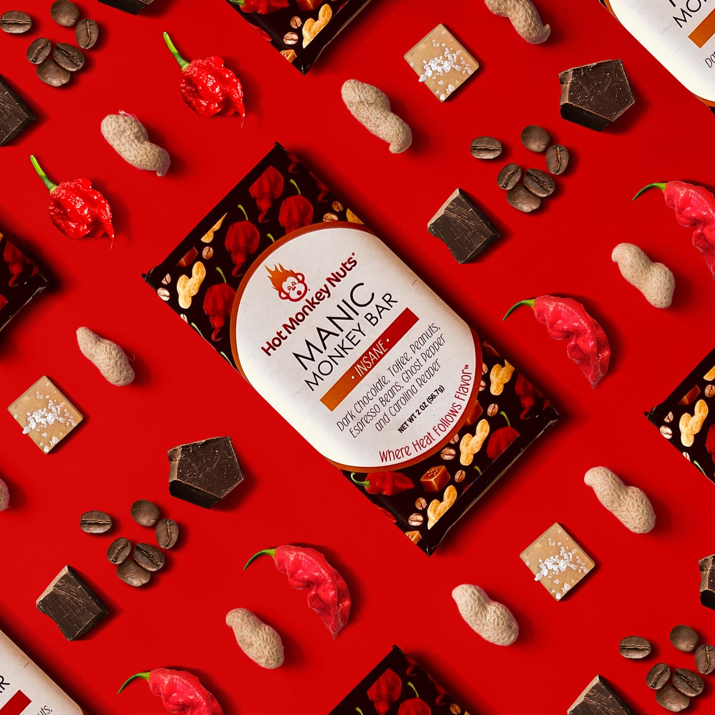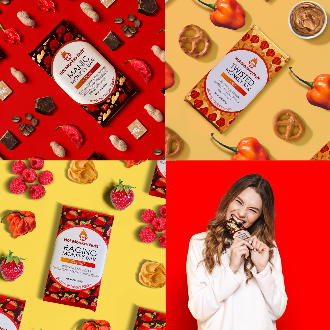 Our spicy chocolate bars were created to bring some much needed heat into the realm of chocolate! Who doesn't love chocolate? What better combination for all the chocolate-lovers and pepper-heads out there! Just like our nuts, you'll first enjoy our delicious flavors followed by a lingering fiery finish.