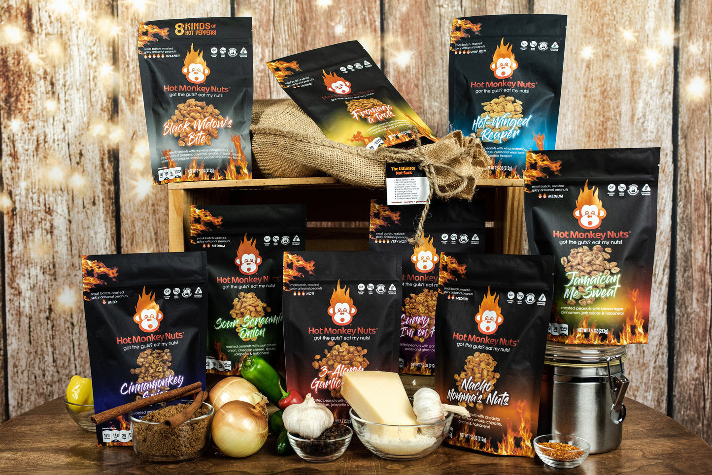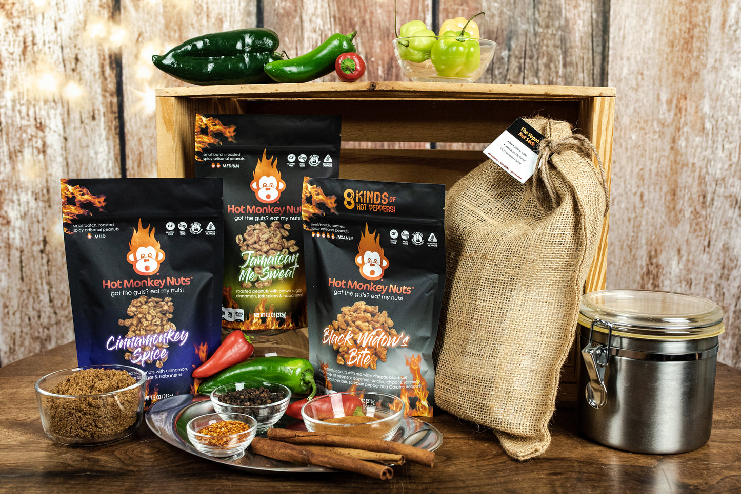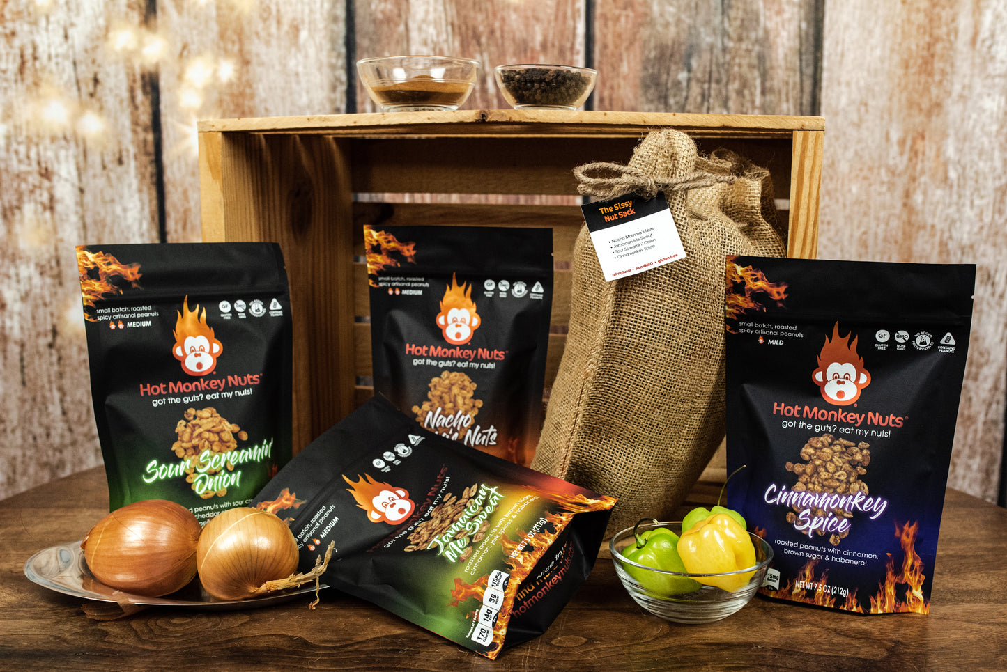 Having a difficult time deciding which flavors to buy? HOT MONKEY NUT SACKS are an excellent option! Each of our 6 NUT SACKS offers a unique combination of our 9 flavors. So go ahead and grab yourself...a nut sack. Your mouth will thank you later.